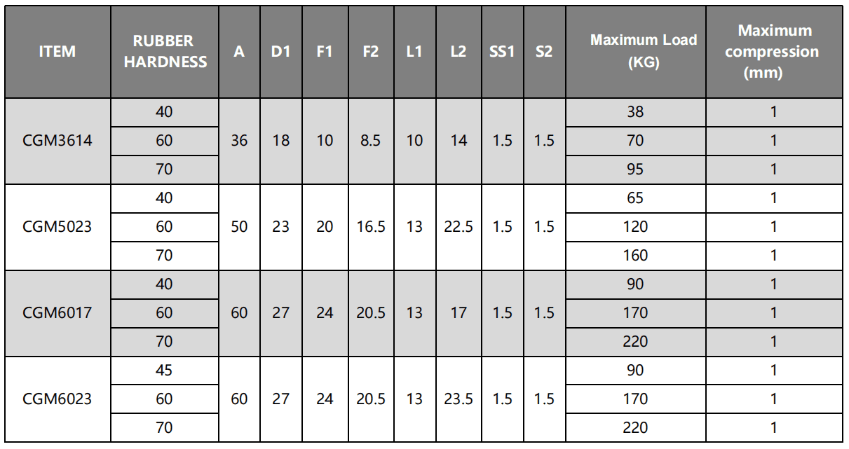 This bi-directional load handling makes the CGM buffer suitable for applications where vertical loads fluctuate dynamically, such as agricultural machines crossing uneven terrain or military vehicles experiencing sudden jolts. This ability prevents excessive mechanical stress, enhances safety margins, and prolongs equipment lifespan by maintaining vibration isolation throughout complex load cycles.