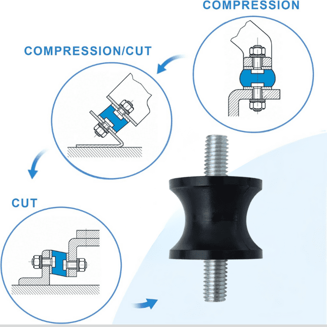 Waisted cylindrical mounts outperform standard cylindrical designs in terms of fatigue resistance under repeated dynamic loads. The waisted rubber profile, with its hourglass-like curvature, promotes even distribution of internal stresses during operation. This helps prevent the formation of micro-cracks and reduces the likelihood of rubber tear or material fatigue over time. In contrast, straight cylindrical mounts tend to experience higher stress concentrations near the bonded interfaces, which can lead to premature failure. The superior fatigue behavior of waisted mounts makes them especially reliable in applications with continuous start-stop cycles or high vibration duty, such as air compressors, industrial pumps, or automated manufacturing lines.