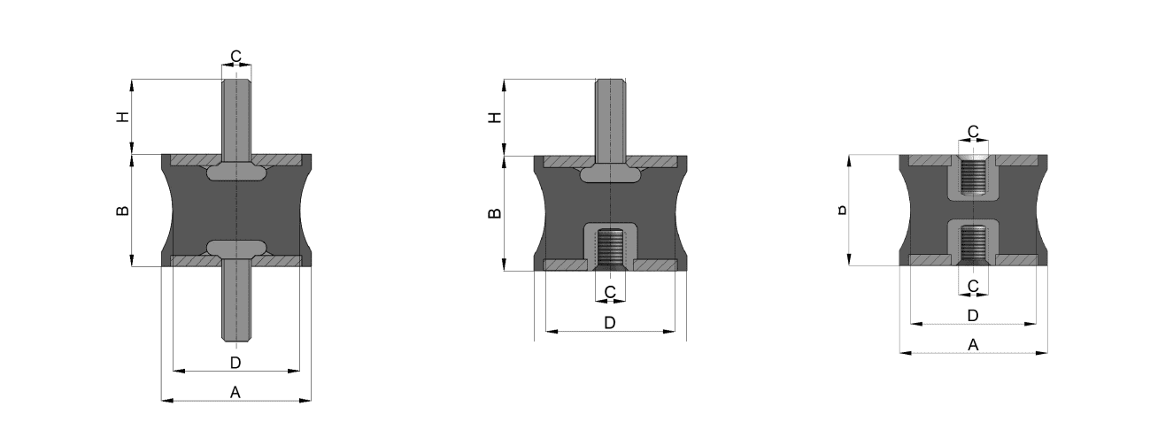 The waisted geometry reduces the cross-sectional stiffness of the rubber body in both axial and radial directions. As a result, the mount exhibits a lower natural frequency, which shifts the system’s isolation range to include more of the mid-frequency vibration spectrum—typically where most industrial equipment operates. Additionally, a lower natural frequency improves the overall transmissibility curve by allowing the ratio of transmitted force to input force to drop below 1.0 over a wider frequency band. This means that vibrations are significantly dampened before reaching the supporting structure. Such behavior is especially beneficial in HVAC systems, electric motors, and compressors, where reducing operational resonance is critical for performance, noise reduction, and equipment longevity.