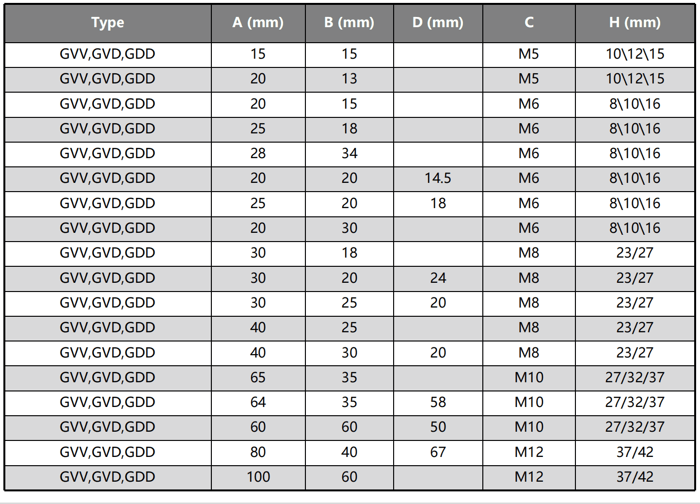 Parameter Table of GVV Type Waisted Cylindrical Rubber Mounts