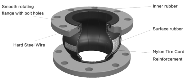 The pressure rating and expected service life of a double-sphere rubber expansion joint are calculated using a combination of mechanical design parameters and operational conditions. The joint’s maximum pressure capacity depends on the pipe diameter, bellows thickness, number of convolutions, and flange rigidity. Service life is typically estimated using fatigue analysis, which considers the number of movement cycles, magnitude of axial/lateral/ angular displacement, and operating pressure fluctuations. Engineers may also use finite element analysis (FEA) to simulate stress distribution under various load scenarios, identifying potential weak points and optimizing the design to minimize failure risk. With proper installation and operation within specified limits, the expected service life of a well-designed double-sphere expansion joint can range from 5 to 10 years, depending on environmental conditions and load intensity.