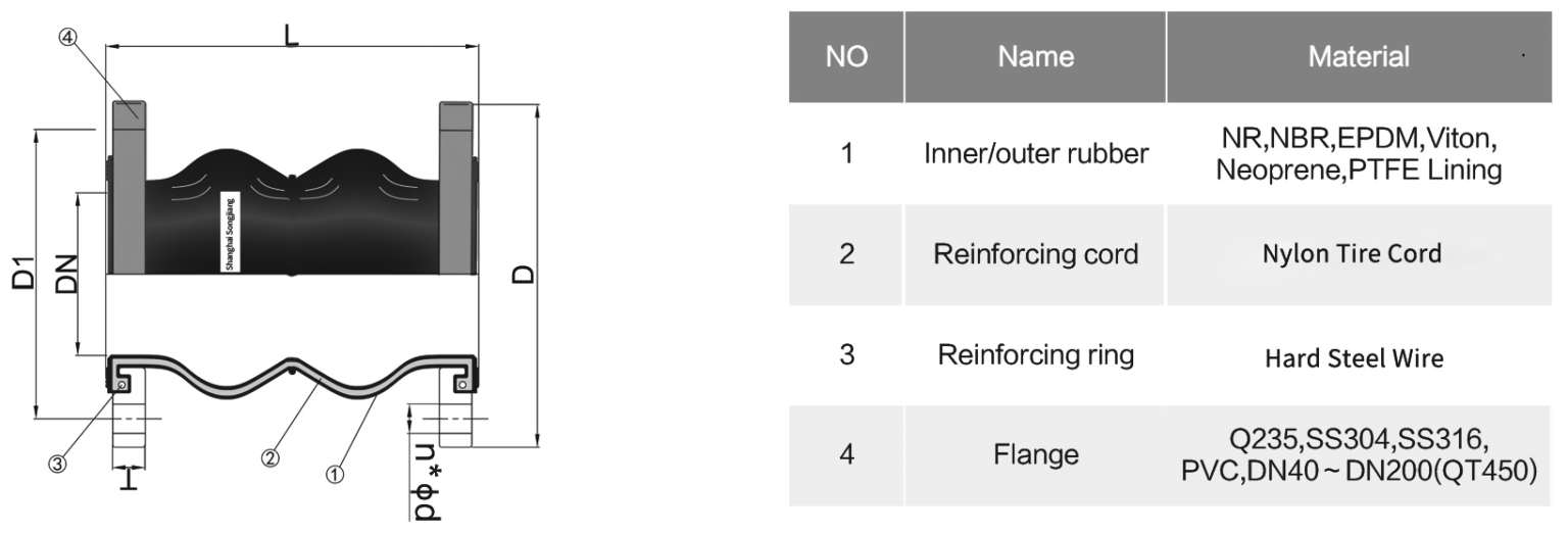 | Option | Flange Material | Flange Standards | Sphere (Bellow) Material |