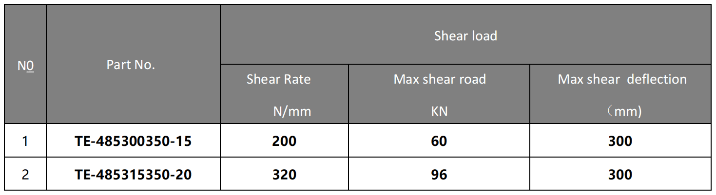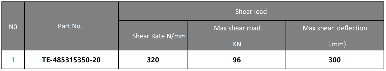 Parameter Table of TE-485300350-15 Large Piling Elastomers