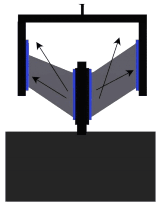 The large vibration damper functions primarily through shear deformation, effectively absorbing substantial vibration energy during operation.