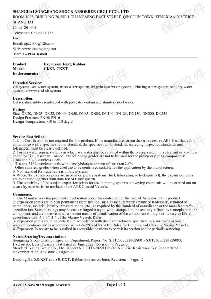 In addition, we are in the process of obtaining CCS certification from the China Classification Society and have secured ABS certification from the United States, reflecting our capability to meet stringent maritime industry standards. Our products also comply with drinking water hygiene approvals and have been verified through flame-retardant rubber testing reports, guaranteeing both safety and performance.